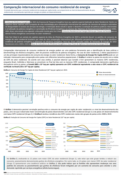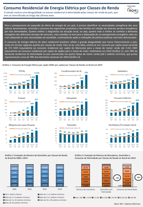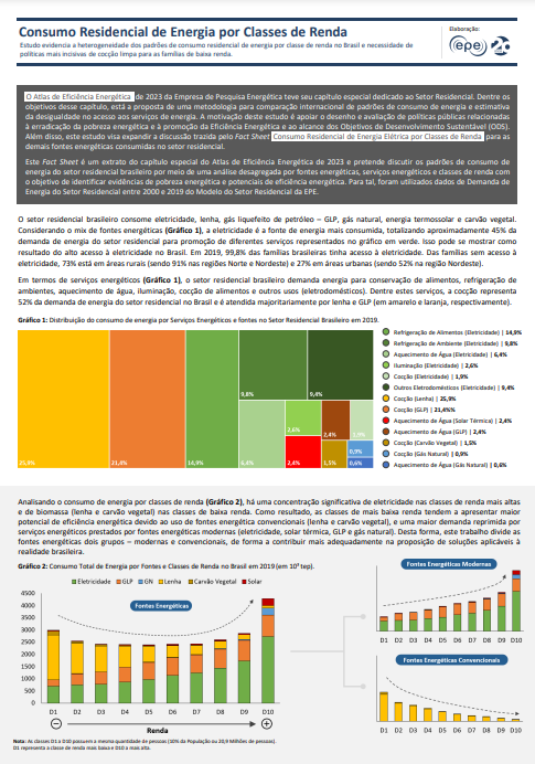 Etapa 3: Proposição e Cálculo de Indicadores – Com base no levantamento bibliográfico internacional feito pela EPE, foram propostas metodologias para o cálculo de indicadores que avaliam o acesso e o uso de energia e outros serviços pelas famílias brasileiras. A análise desses indicadores visa identificar padrões, tendências e disparidades, com o objetivo de apoiar a formulação e o aprimoramento das políticas públicas de combate à pobreza energética.